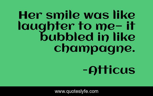 This page presents the quote "Her smile was like laughter to me— it bubbled in like champagne.". Author of this quote is Atticus. .