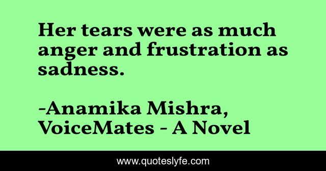 This page presents the quote "Her tears were as much anger and frustration as sadness.". Author of this quote is Anamika Mishra, VoiceMates - A Novel. This quote is about sadness, love, voicemates, affection, author,.