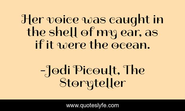 This page presents the quote "Her voice was caught in the shell of my ear, as if it were the ocean.". Author of this quote is Jodi Picoult, The Storyteller. This quote is about history, song,.