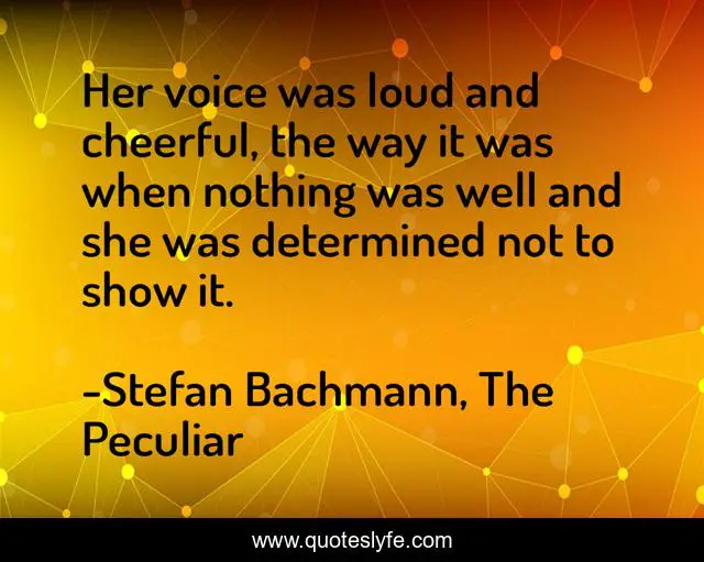 "Stefan Bachmann, The Peculiar Quotes." Quoteslyfe.com, 2025. Fri. 05 Dec. 2025. <https://www.quoteslyfe.com/quote/Her-voice-was-loud-and-cheerful-the-175561>.