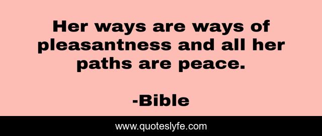 This page presents the quote "Her ways are ways of pleasantness and all her paths are peace.". Author of this quote is Bible. .