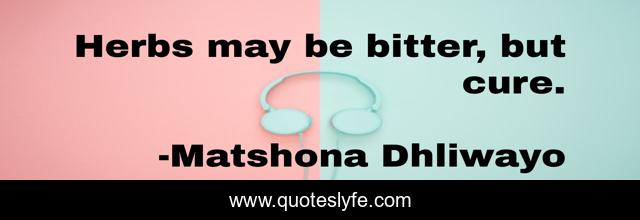 "Matshona Dhliwayo Quotes." Quoteslyfe.com, 2025. Tue. 09 Dec. 2025. <https://www.quoteslyfe.com/quote/Herbs-may-be-bitter-but-cure-207587>.