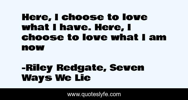 "Riley Redgate, Seven Ways We Lie Quotes." Quoteslyfe.com, 2025. Sat. 06 Dec. 2025. <https://www.quoteslyfe.com/quote/Here-I-choose-to-love-what-I-147537>.