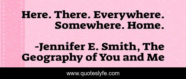 "Jennifer E. Smith, The Geography of You and Me Quotes." Quoteslyfe.com, 2025. Tue. 09 Dec. 2025. <https://www.quoteslyfe.com/quote/Here-There-Everywhere-Somewhere-Home-153805>.
