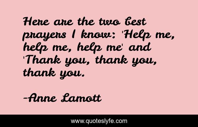 This page presents the quote "Here are the two best prayers I know: 'Help me, help me, help me' and 'Thank you, thank you, thank you.". Author of this quote is Anne Lamott. This quote is about thankfulness, help, prayer,.