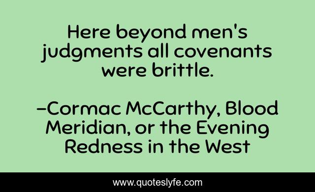 "Cormac McCarthy, Blood Meridian, or the Evening Redness in the West Quotes." Quoteslyfe.com, 2025. Mon. 08 Dec. 2025. <https://www.quoteslyfe.com/quote/Here-beyond-men-s-judgments-all-covenants-54465>.