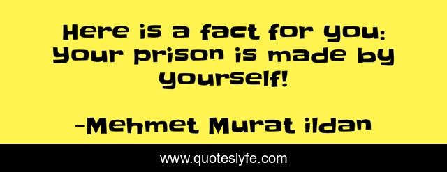 This page presents the quote "Here is a fact for you: Your prison is made by yourself!". Author of this quote is Mehmet Murat ildan. This quote is about murat-ildan, your-prison, made-by-yourself, fact, prison,.