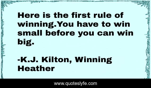 This page presents the quote "Here is the first rule of winning.You have to win small before you can win big.". Author of this quote is K.J. Kilton, Winning Heather. .
