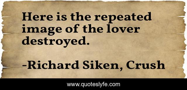 This page presents the quote "Here is the repeated image of the lover destroyed.". Author of this quote is Richard Siken, Crush. This quote is about crush, poetry, richard-siken,.