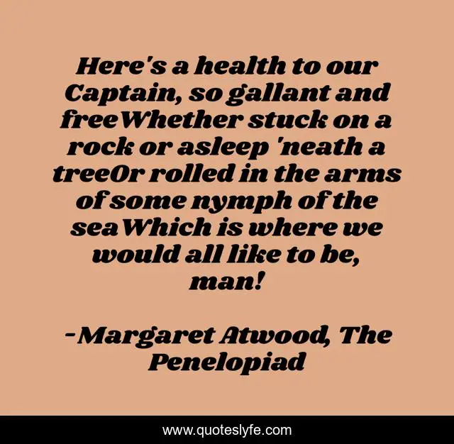 "Margaret Atwood, The Penelopiad Quotes." Quoteslyfe.com, 2025. Sat. 06 Dec. 2025. <https://www.quoteslyfe.com/quote/Here-s-a-health-to-our-Captain-55956>.