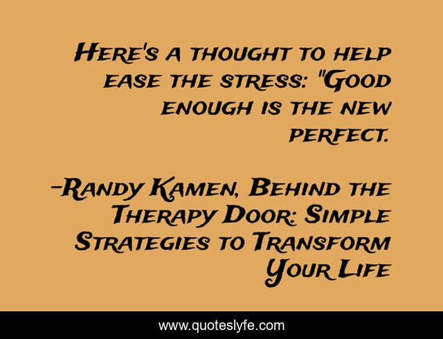 This page presents the quote "Here's a thought to help ease the stress: "Good enough is the new perfect.". Author of this quote is Randy Kamen, Behind the Therapy Door: Simple Strategies to Transform Your Life. This quote is about wellness, mental-health, happiness,.