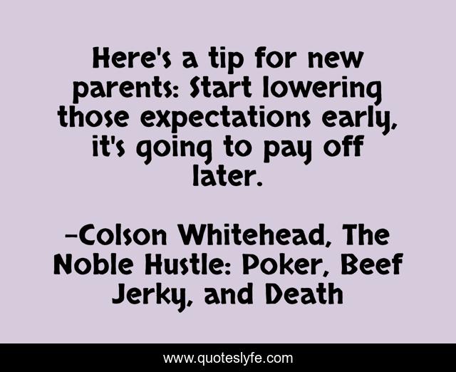 "Colson Whitehead, The Noble Hustle: Poker, Beef Jerky, and Death Quotes." Quoteslyfe.com, 2025. Fri. 05 Dec. 2025. <https://www.quoteslyfe.com/quote/Here-s-a-tip-for-new-parents-99908>.