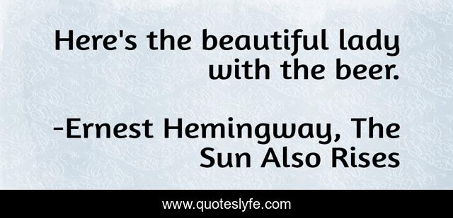 This page presents the quote "Here's the beautiful lady with the beer.". Author of this quote is Ernest Hemingway, The Sun Also Rises. This quote is about beautiful, beer, lady,.