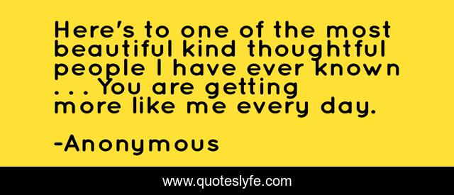 This page presents the quote "Here's to one of the most beautiful kind thoughtful people I have ever known . . . You are getting more like me every day.". Author of this quote is Anonymous. This quote is about yous, thank, closures,.