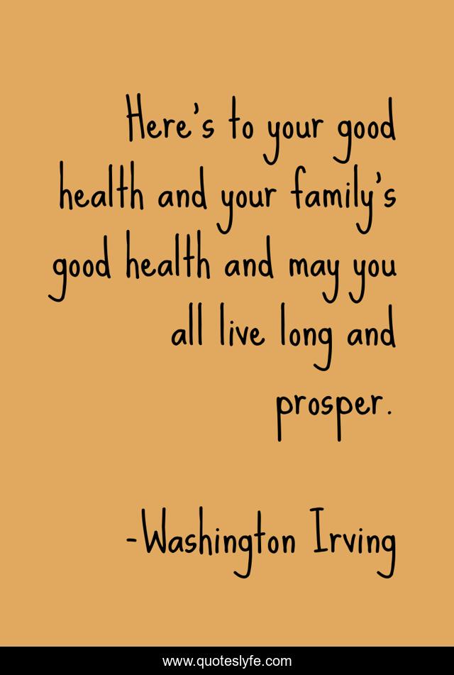 This page presents the quote "Here's to your good health and your family's good health and may you all live long and prosper.". Author of this quote is Washington Irving. .