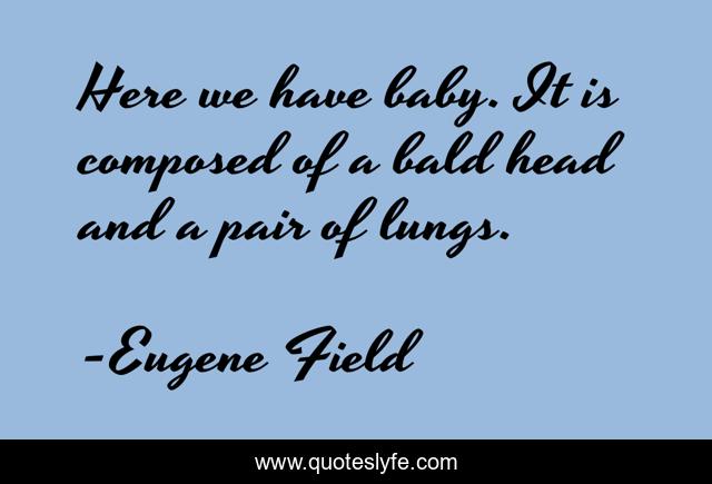 This page presents the quote "Here we have baby. It is composed of a bald head and a pair of lungs.". Author of this quote is Eugene Field. .