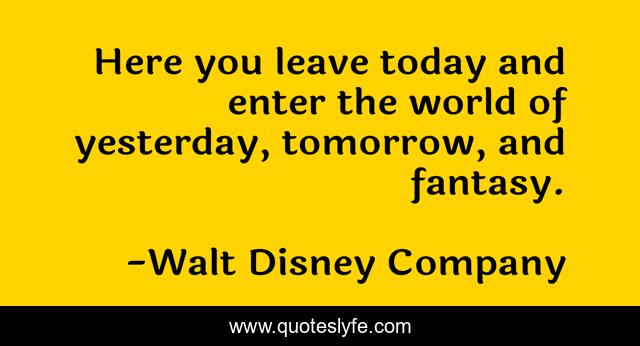 "Walt Disney Company Quotes." Quoteslyfe.com, 2025. Mon. 08 Dec. 2025. <https://www.quoteslyfe.com/quote/Here-you-leave-today-and-enter-the-53096>.