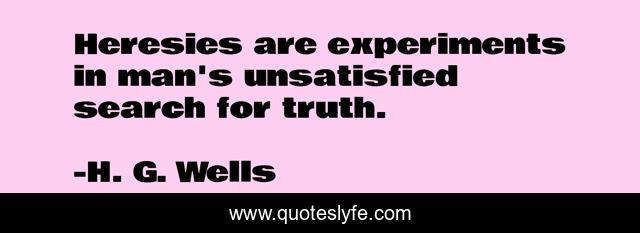 This page presents the quote "Heresies are experiments in man's unsatisfied search for truth.". Author of this quote is H. G. Wells. This quote is about search, experiments, man,.