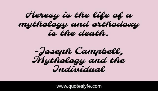 This page presents the quote "Heresy is the life of a mythology and orthodoxy is the death.". Author of this quote is Joseph Campbell, Mythology and the Individual. This quote is about religion, mythology, orthodoxy,.