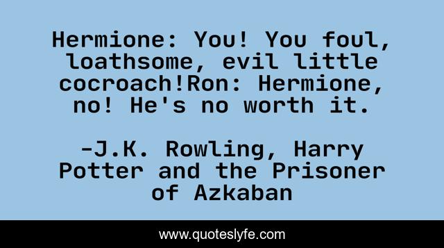 This page presents the quote "Hermione: You! You foul, loathsome, evil little cocroach!Ron: Hermione, no! He's no worth it.". Author of this quote is J.K. Rowling, Harry Potter and the Prisoner of Azkaban. .