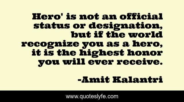 "Amit Kalantri Quotes." Quoteslyfe.com, 2025. Fri. 05 Dec. 2025. <https://www.quoteslyfe.com/quote/Hero-is-not-an-official-status-or-165062>.