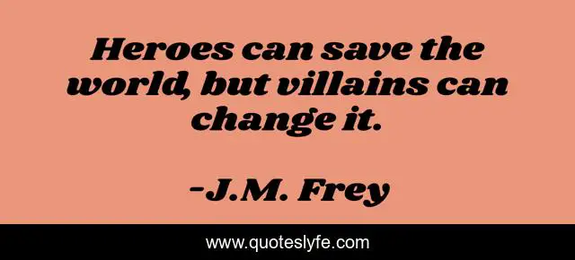 This page presents the quote "Heroes can save the world, but villains can change it.". Author of this quote is J.M. Frey. This quote is about villains, hero, changes, world,.