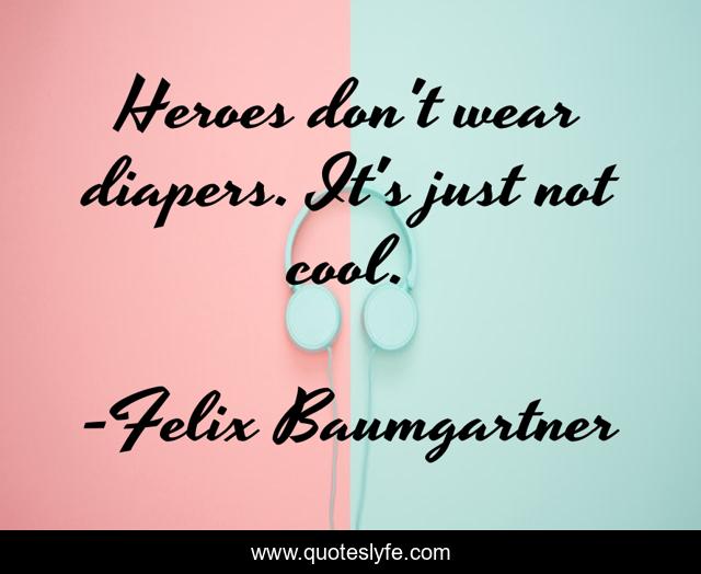 This page presents the quote "Heroes don't wear diapers. It's just not cool.". Author of this quote is Felix Baumgartner. This quote is about heroes, diapers, just,.