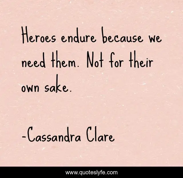 "Cassandra Clare Quotes." Quoteslyfe.com, 2025. Fri. 05 Dec. 2025. <https://www.quoteslyfe.com/quote/Heroes-endure-because-we-need-them-Not-250588>.
