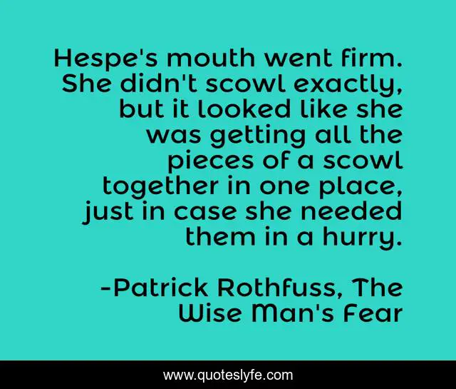"Patrick Rothfuss, The Wise Man's Fear Quotes." Quoteslyfe.com, 2025. Sat. 06 Dec. 2025. <https://www.quoteslyfe.com/quote/Hespe-s-mouth-went-firm-She-didn-161304>.
