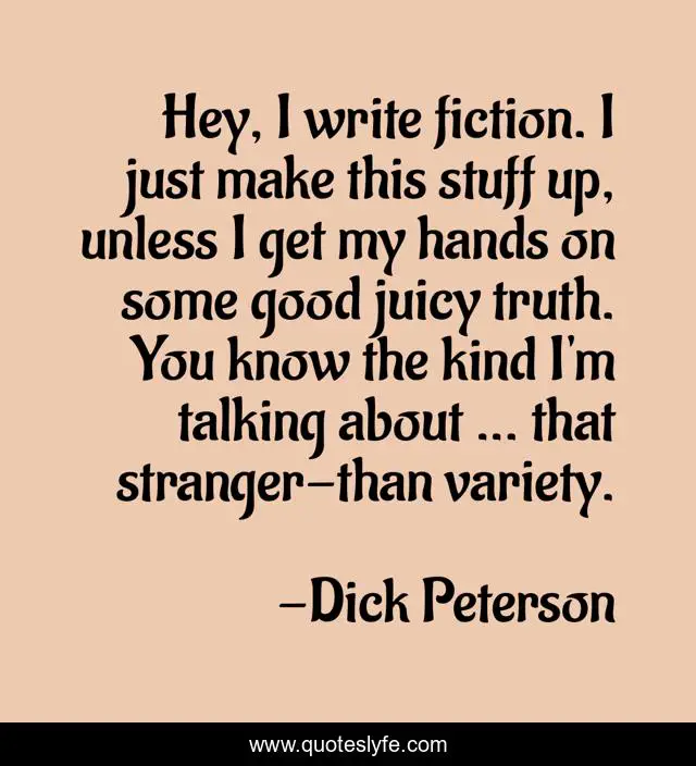 "Dick Peterson Quotes." Quoteslyfe.com, 2025. Fri. 05 Dec. 2025. <https://www.quoteslyfe.com/quote/Hey-I-write-fiction-I-just-make-10581>.
