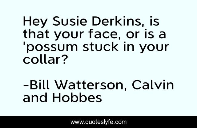 "Bill Watterson, Calvin and Hobbes Quotes." Quoteslyfe.com, 2025. Sat. 06 Dec. 2025. <https://www.quoteslyfe.com/quote/Hey-Susie-Derkins-is-that-your-face-7147>.