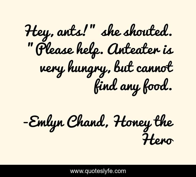 "Emlyn Chand, Honey the Hero Quotes." Quoteslyfe.com, 2025. Fri. 05 Dec. 2025. <https://www.quoteslyfe.com/quote/Hey-ants-she-shouted-Please-help-Anteater-99420>.