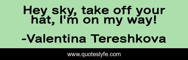 This page presents the quote "Hey sky, take off your hat, I'm on my way!". Author of this quote is Valentina Tereshkova. This quote is about sky, hat, way,.
