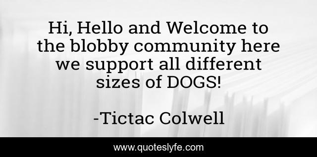 This page presents the quote "Hi, Hello and Welcome to the blobby community here we support all different sizes of DOGS!". Author of this quote is Tictac Colwell. .