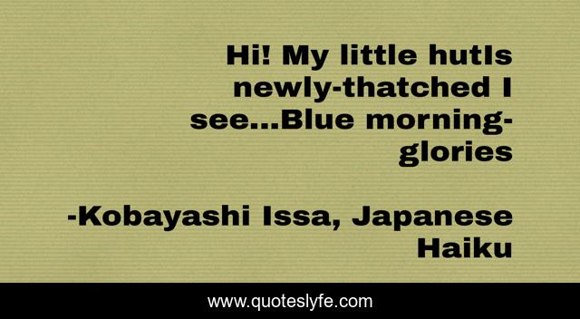 This page presents the quote "Hi! My little hutIs newly-thatched I see...Blue morning-glories". Author of this quote is Kobayashi Issa, Japanese Haiku. This quote is about morning-glories, beauty, haiku,.