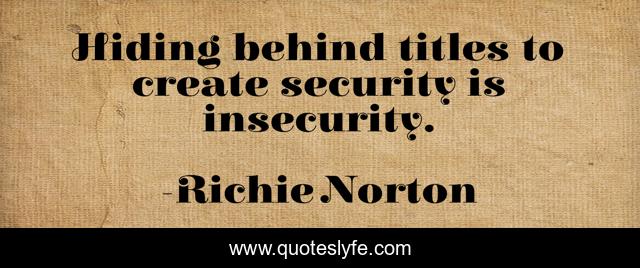 This page presents the quote "Hiding behind titles to create security is insecurity.". Author of this quote is Richie Norton. This quote is about management, title, insecurity, scared, entrepreneurship, to, behind, titles, leadership,.