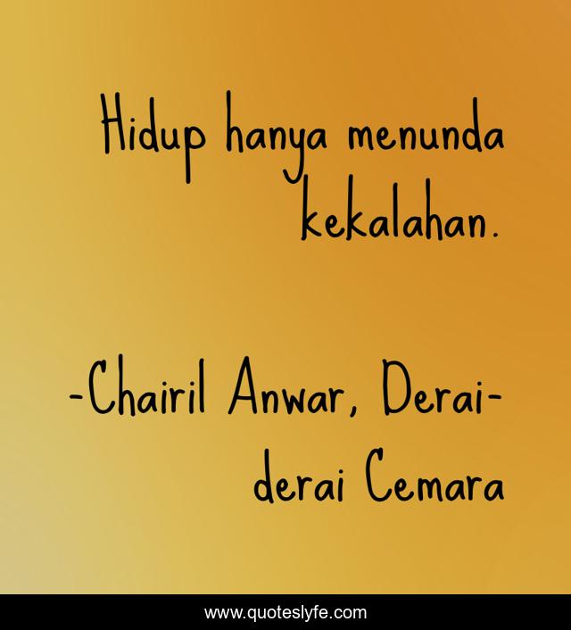 "Chairil Anwar, Derai-derai Cemara Quotes." Quoteslyfe.com, 2025. Sat. 06 Dec. 2025. <https://www.quoteslyfe.com/quote/Hidup-hanya-menunda-kekalahan-10885>.
