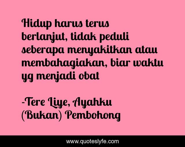"Tere Liye, Ayahku (Bukan) Pembohong Quotes." Quoteslyfe.com, 2025. Sat. 06 Dec. 2025. <https://www.quoteslyfe.com/quote/Hidup-harus-terus-berlanjut-tidak-peduli-seberapa-13986>.
