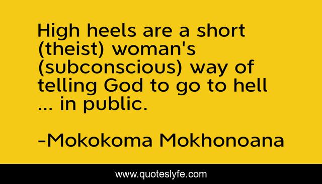 "Mokokoma Mokhonoana Quotes." Quoteslyfe.com, 2025. Mon. 08 Dec. 2025. <https://www.quoteslyfe.com/quote/High-heels-are-a-short-theist-woman-183650>.
