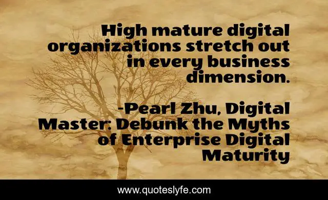 This page presents the quote "High mature digital organizations stretch out in every business dimension.". Author of this quote is Pearl Zhu, Digital Master: Debunk the Myths of Enterprise Digital Maturity. This quote is about business-management, digital, maturity,.