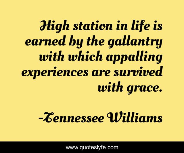 This page presents the quote "High station in life is earned by the gallantry with which appalling experiences are survived with grace.". Author of this quote is Tennessee Williams. .