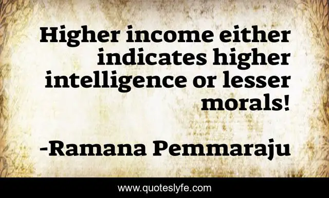 This page presents the quote "Higher income either indicates higher intelligence or lesser morals!". Author of this quote is Ramana Pemmaraju. This quote is about talent, corruption, morals, income,.