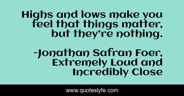 This page presents the quote "Highs and lows make you feel that things matter, but they're nothing.". Author of this quote is Jonathan Safran Foer, Extremely Loud and Incredibly Close. This quote is about nothing, highs, life, truth, lows,.