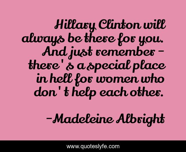 This page presents the quote "Hillary Clinton will always be there for you. And just remember - there's a special place in hell for women who don't help each other.". Author of this quote is Madeleine Albright. This quote is about help, remember,.