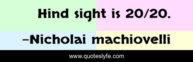 This page presents the quote "Hind sight is 20/20.". Author of this quote is Nicholai machiovelli. .
