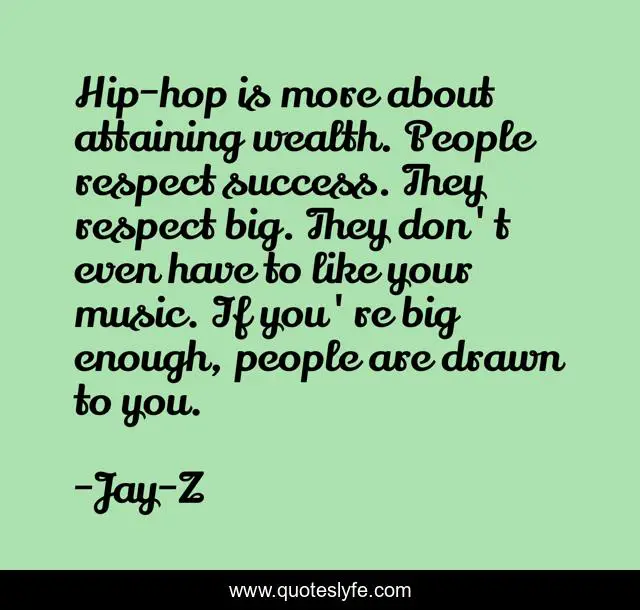 This page presents the quote "Hip-hop is more about attaining wealth. People respect success. They respect big. They don't even have to like your music. If you're big enough, people are drawn to you.". Author of this quote is Jay-Z. This quote is about music, wealth, success,.