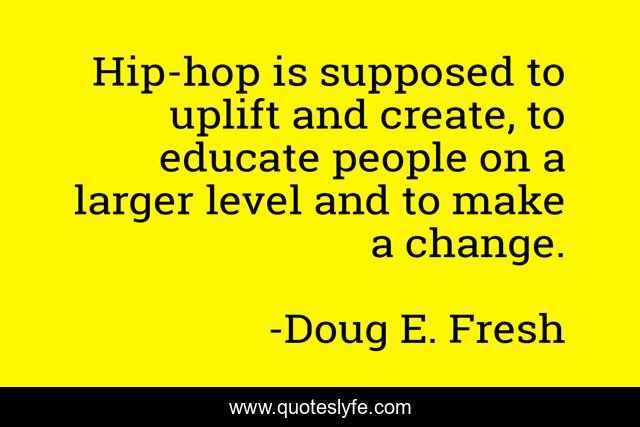 This page presents the quote "Hip-hop is supposed to uplift and create, to educate people on a larger level and to make a change.". Author of this quote is Doug E. Fresh. This quote is about create, hip-hop, people,.