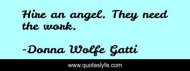 "Donna Wolfe Gatti Quotes." Quoteslyfe.com, 2025. Sat. 06 Dec. 2025. <https://www.quoteslyfe.com/quote/Hire-an-angel-They-need-the-work-219582>.