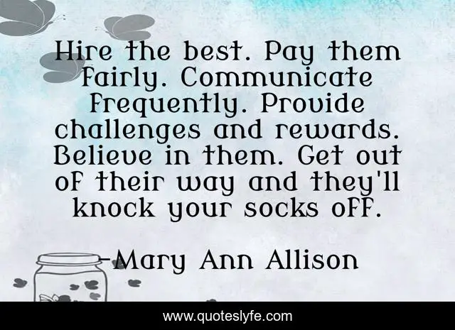 "Mary Ann Allison Quotes." Quoteslyfe.com, 2025. Sat. 06 Dec. 2025. <https://www.quoteslyfe.com/quote/Hire-the-best-Pay-them-fairly-Communicate-267488>.
