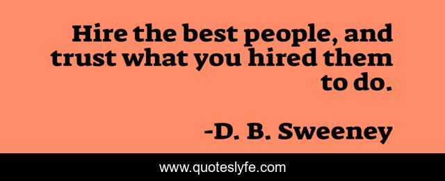 This page presents the quote "Hire the best people, and trust what you hired them to do.". Author of this quote is D. B. Sweeney. This quote is about best, people,.